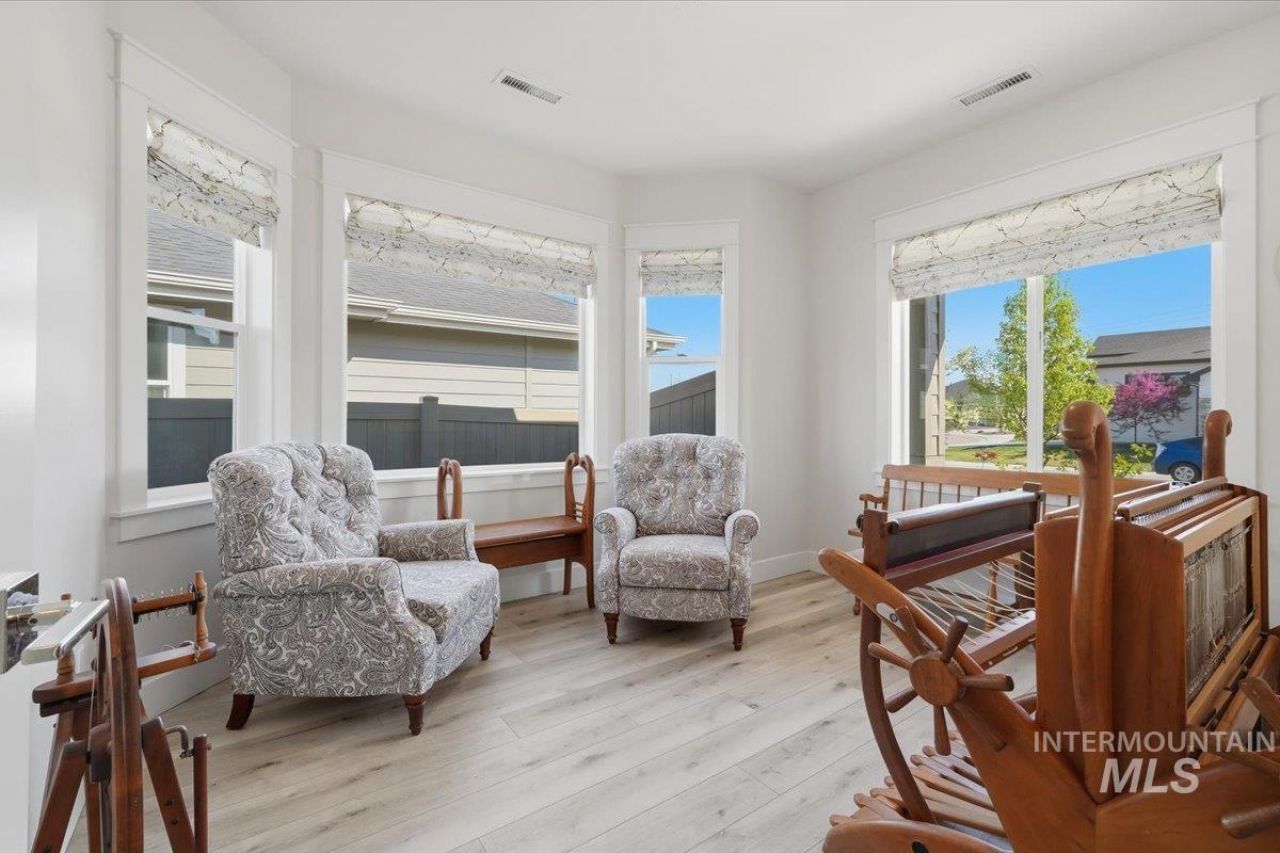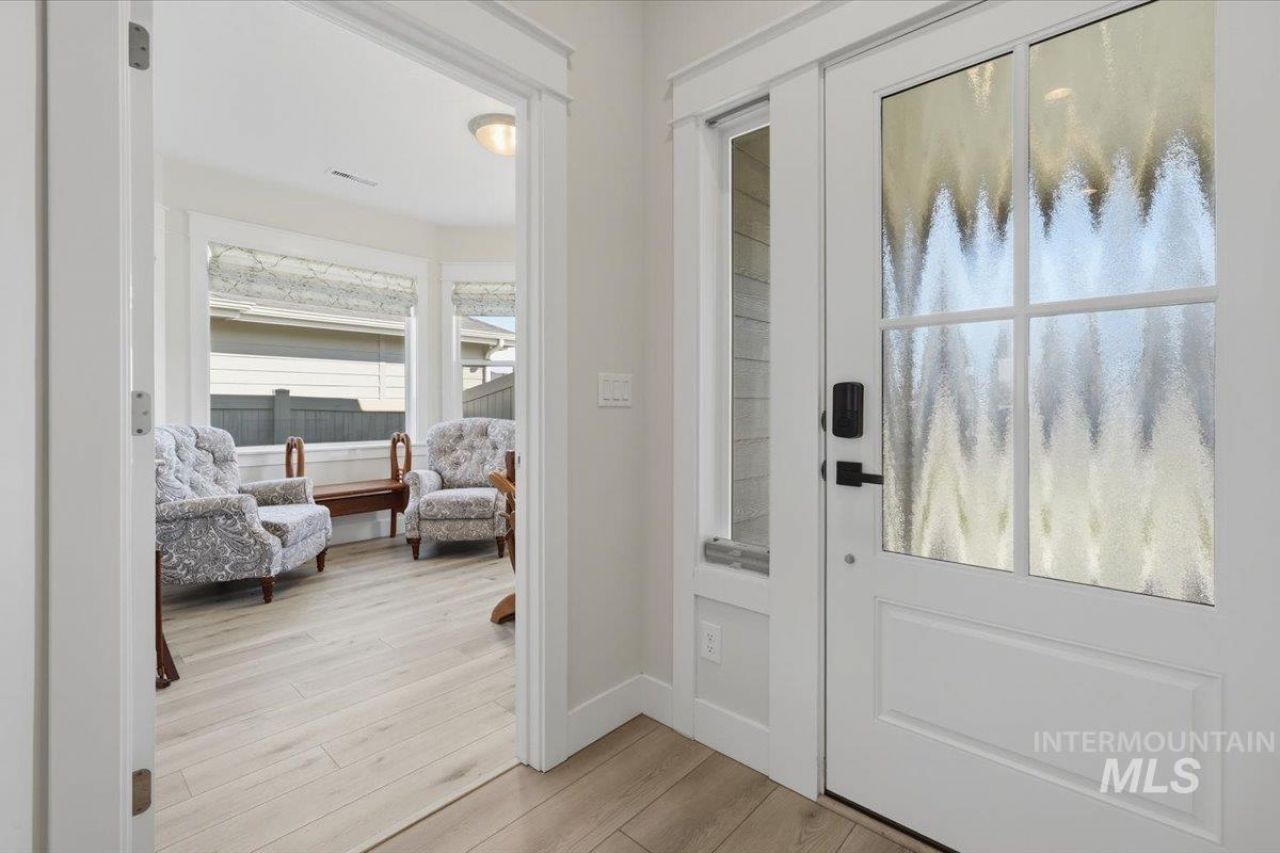 Welcome to your peaceful retreat in South Nampas desirable Heron Ridge! This impeccably maintained single-level home is just minutes from Lake Lowell and across from Redhawk Ridge Golf course, which makes it a dream for outdoor enthusiasts. Enjoy an open-concept great room, which features a gas fireplace, engineered vinyl plank flooring, quartz countertops and high-end Bosch appliances in a kitchen designed for entertaining! The split bedroom floor plan ensures privacy with a master suite that has a walk-in tile shower and dual vanities. This versatile layout includes an office/den, a walk in pantry and a mud bench off the laundry room. Outside you will find a fully updated landscaped and partially fenced yard with a covered patio, which you can relax on and take in the tranquility of the quiet, established community.